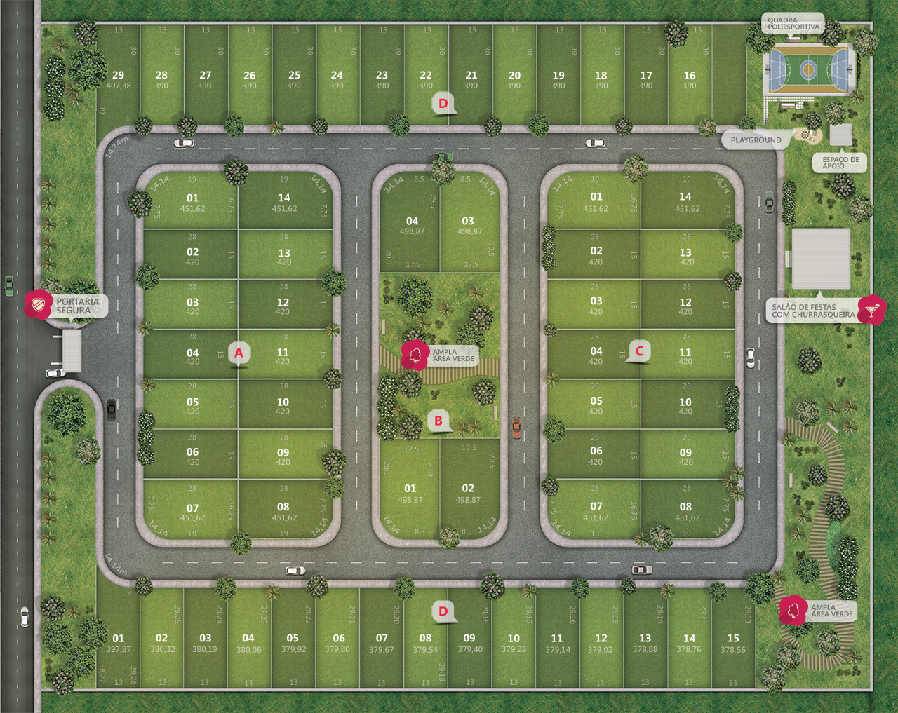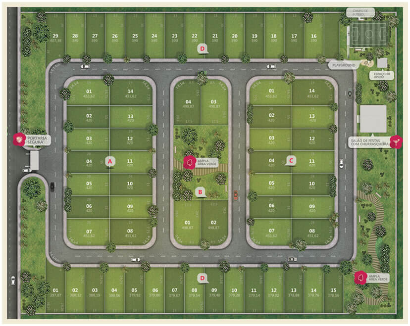 O condomínio Santa Rosa Residence conta com área de lazer com: Espaço gourmet com churrasqueira, campo de futebol, playground, praça e área verde.